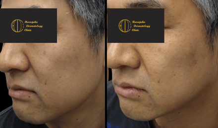 一目瞭然の違い!!同じ方と思えないほど、フェイスラインのたるみがシャープに、ほうれい線と口元のぽにょとしたたるみがスッキリ改善していますよね。